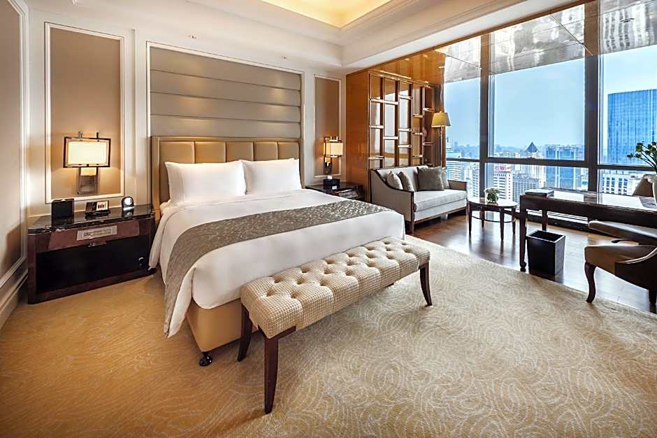 This top-floor suite features a separate seating area, flat-screen TV and coffee/tea facilities. The bathroom comes with a shower and bath, bathrobes, slippers and luxurious toiletries.